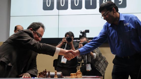 Viswanathan Anand sentía que sus habilidades ajedrecísticas estaban decayendo cuando ganó su quinto campeonato del mundo, derrotando a Boris Gelfand. KIRILL KUDRYAVTSEV/AFP/GettyImages