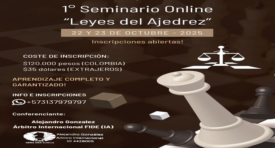 Me complace anunciar un nuevo seminario, y será de conocimiento y comprensión de las Leyes del Ajedrez al completo!