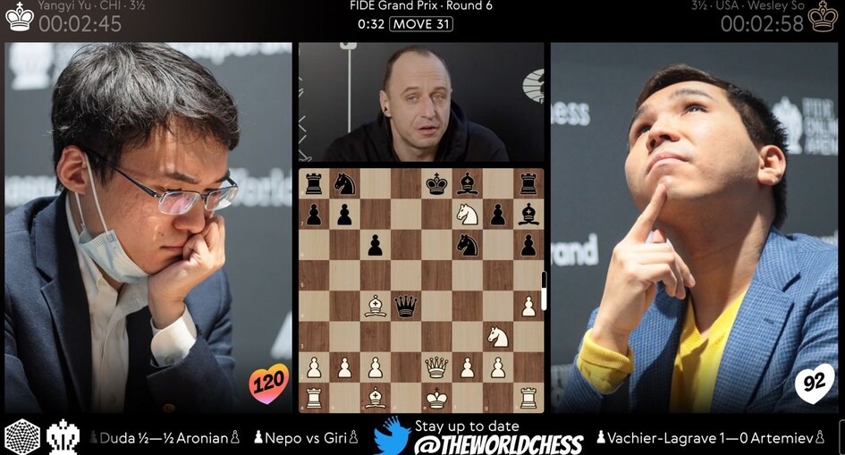 La retransmisión oficial del Gran Premio de la FIDE está disponible de forma gratuita en worldchess.com y en los canales de Youtube y Twitch de World Chess. Además del indicador de frecuencia cardíaca, incluye video en vivo desde el área de juego, comentarios de expertos, así como entrevistas de jugadores y espectadores y más. World Chess continuará desarrollando y utilizando la tecnología de lectura de frecuencia cardíaca en video en futuros eventos y transmisiones.