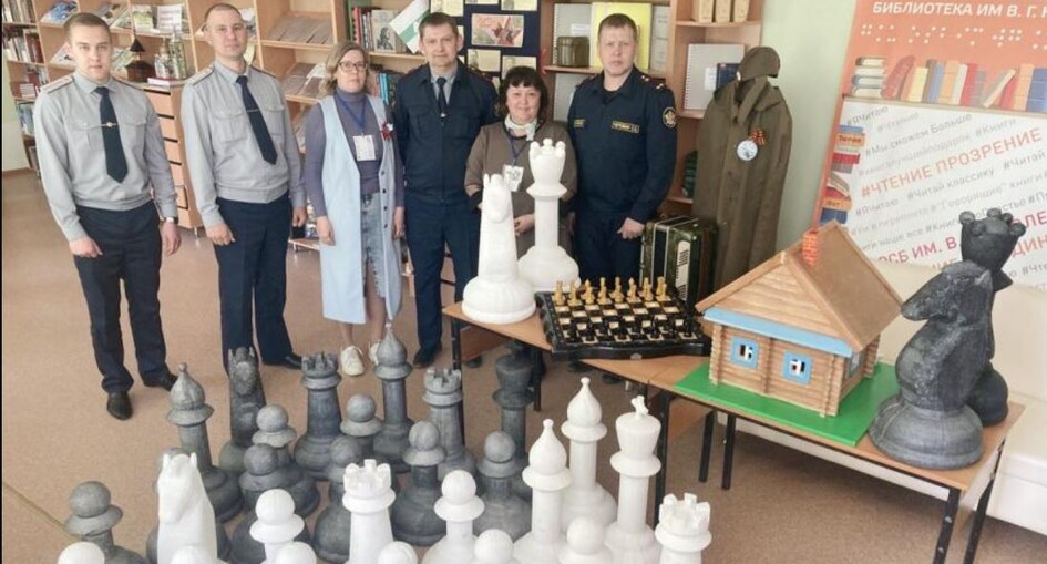 El personal del Instituto Correccional-1 regaló un juego único de piezas de ajedrez a la biblioteca especial regional. Las piezas de ajedrez de medio metro están hechas de espuma, sus bases están lastradas para mayor estabilidad.