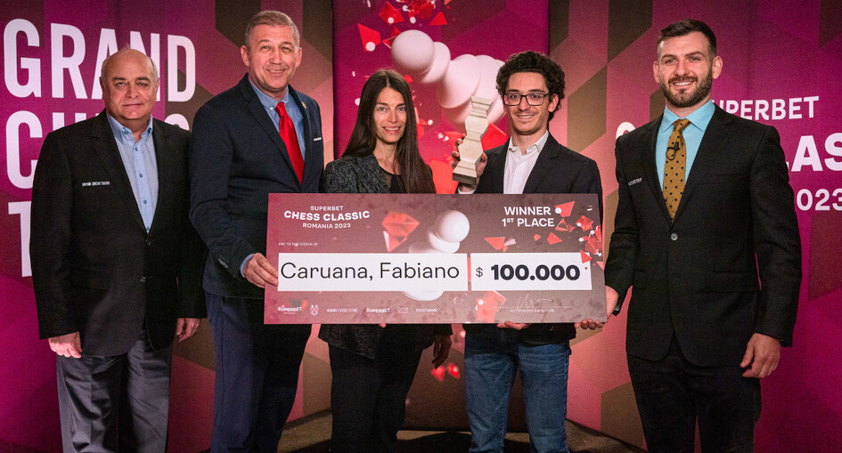 El Gran Maestro (GM) estadounidense Fabiano Luigi Caruana se ha impuesto de manera solvente en el Superbet Chess Classic, evento que da inicio al Chess Tour 2023 y que se llevó a cabo en la mítica ciudad de Bucarest en Rumania, el talento de origen italiano finalizó invicto con 5,5 de 9 posibles, en el segundo lugar quedaron empatados los GMs Wesley So de USA (de origen filipino), Richard Rapport de Rumania 8de origen húngaro), Anish Giri de Países Bajos y Alireza Firouzja de Francia (de origen iraní) con 5 puntos.