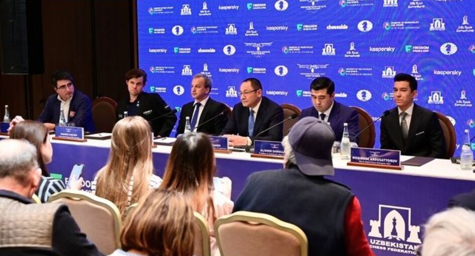 El corresponsal de Gazeta.uz preguntó a Carlsen si volvería a luchar por el título de campeón del mundo si Nodirbek Abdusattorov pudiera ganar el título. Anteriormente, el gran maestro noruego dijo que no defendería su título si su oponente no fuera Alireza Firouzja.